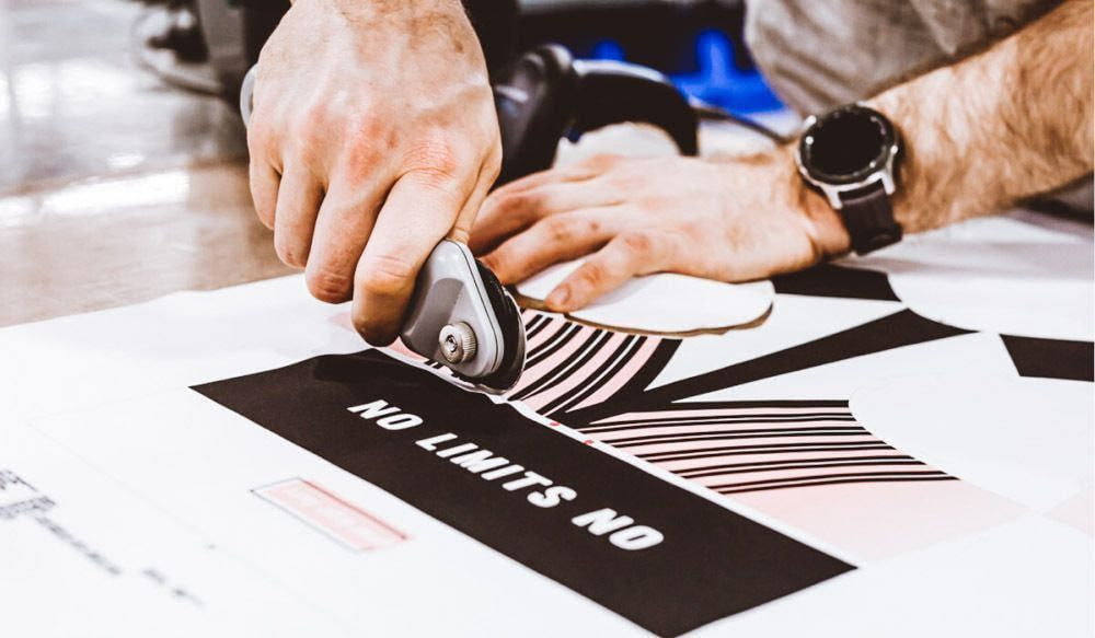 All-over print products are made by printing every part of an item on a roll of fabric, cutting them out, and sewing them together. This inevitably leaves some leftover fabric scraps that have to be thrown out. In the past, we have reduced the amount of fabric waste by optimizing our print layouts, but in 2021 we found a new way to put more of the fabric to good use.