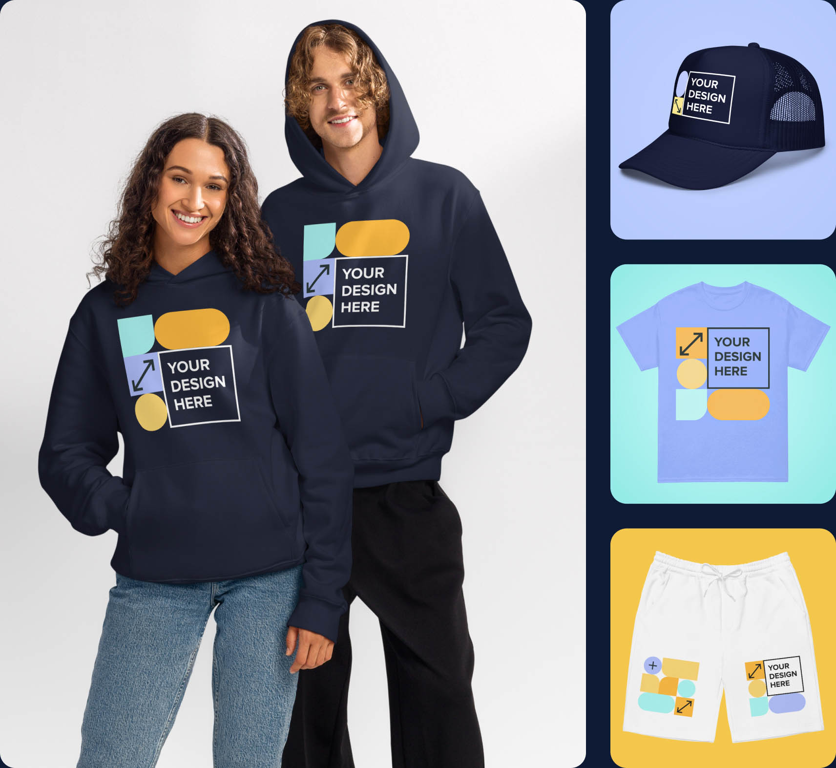 From t-shirts to hoodies, pants to accessories – design your custom clothing in minutes.