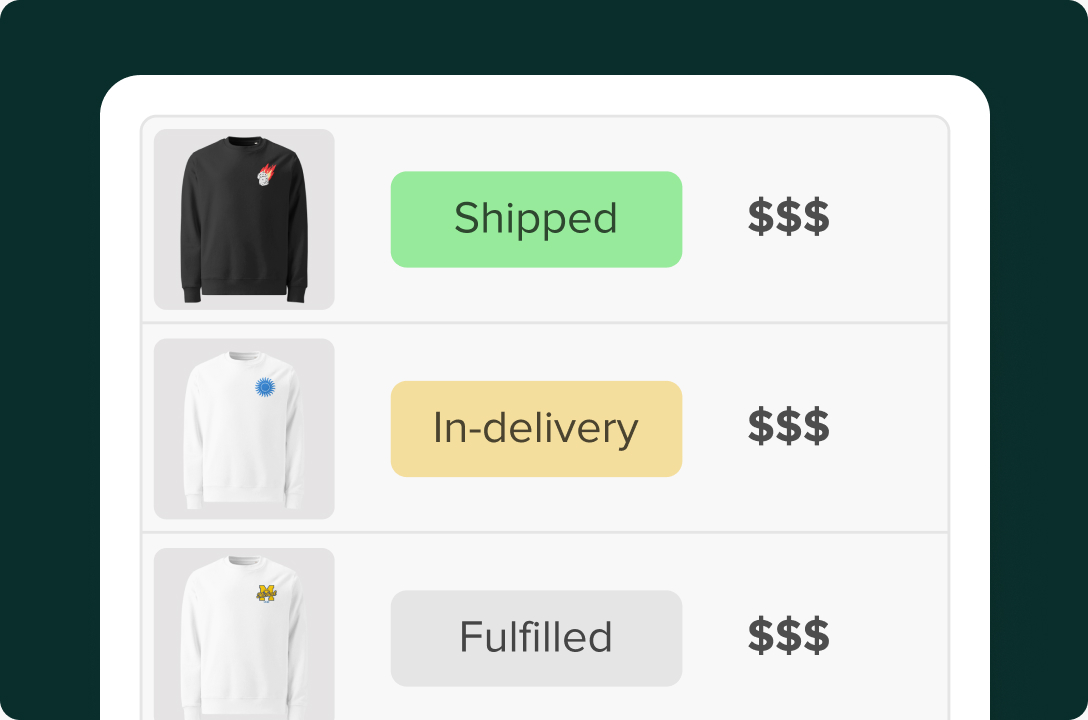 Order for yourself or sell embroidered sweatshirts online with no inventory, no upfront costs, and automatic fulfillment.
