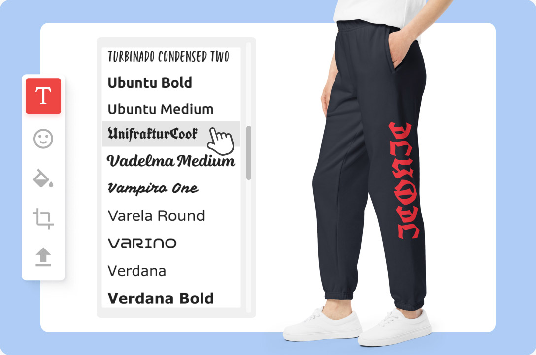 Design your own sweatpants from scratch using our free Design Maker, equipped with tools perfect for both beginners and experienced creators.