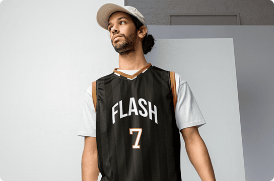 Open our free basketball jersey maker, upload your logo or artwork, and add your team name, numbers, or colors. Preview your design instantly on high-quality mockups before ordering or selling online.