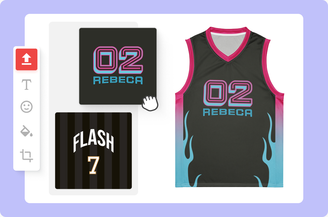 Use our free Design Maker to add names, numbers, logos, colors, and patterns.