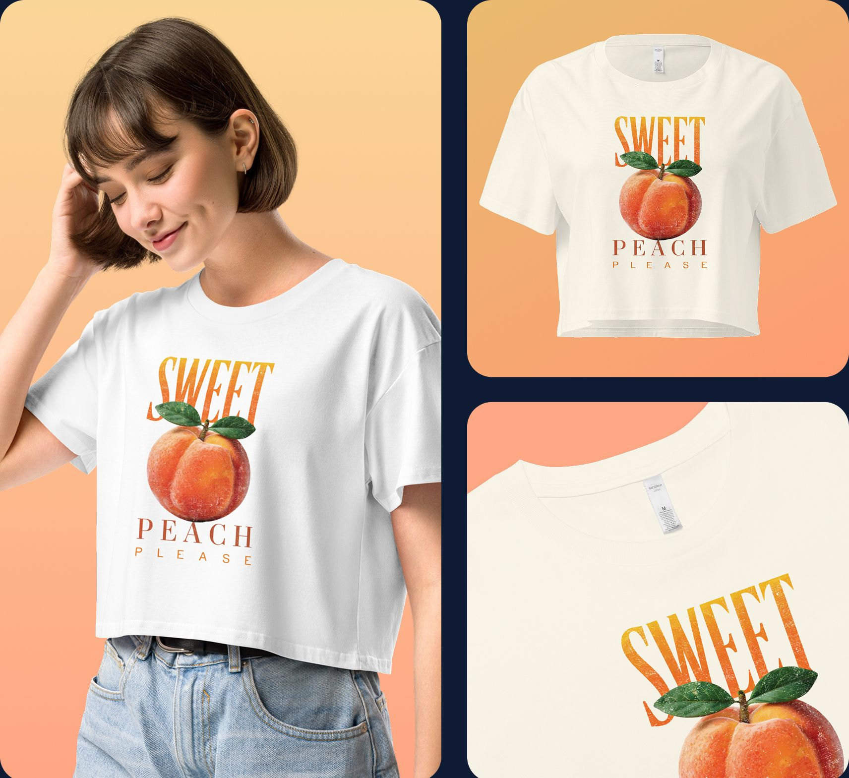 - Set your prices and publish your custom-printed crop tops to sell them online. We’ll automatically print and ship every order that comes in.