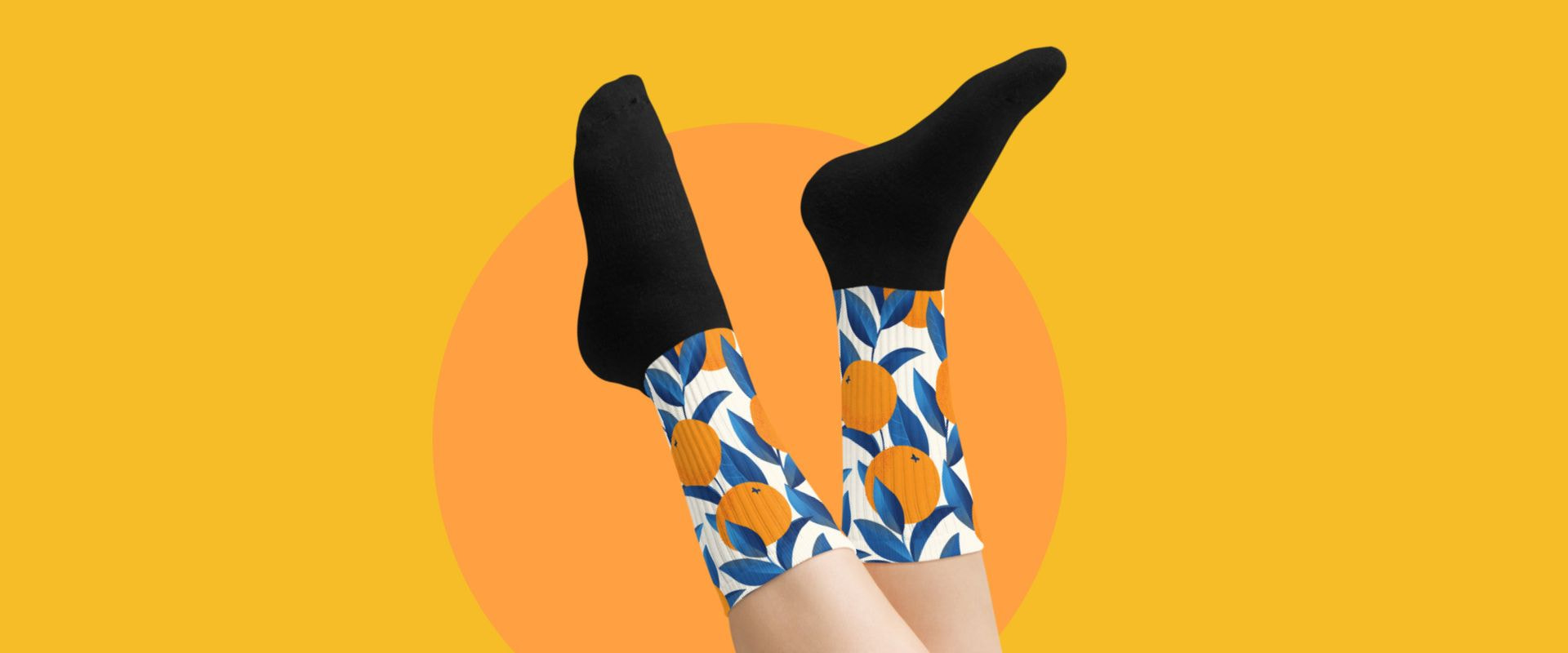 Make your own socks using a print-on-demand platform like Printful. Simply select a sock style, upload your design, and place your order – Printful handles everything from printing to shipping.