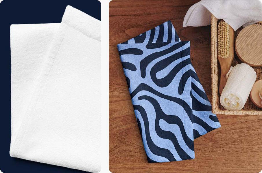 - Sublimated Towel: 52% cotton, 48% polyester (fulfilled in the US) or 50% cotton, 50% polyester (fulfilled in the EU)