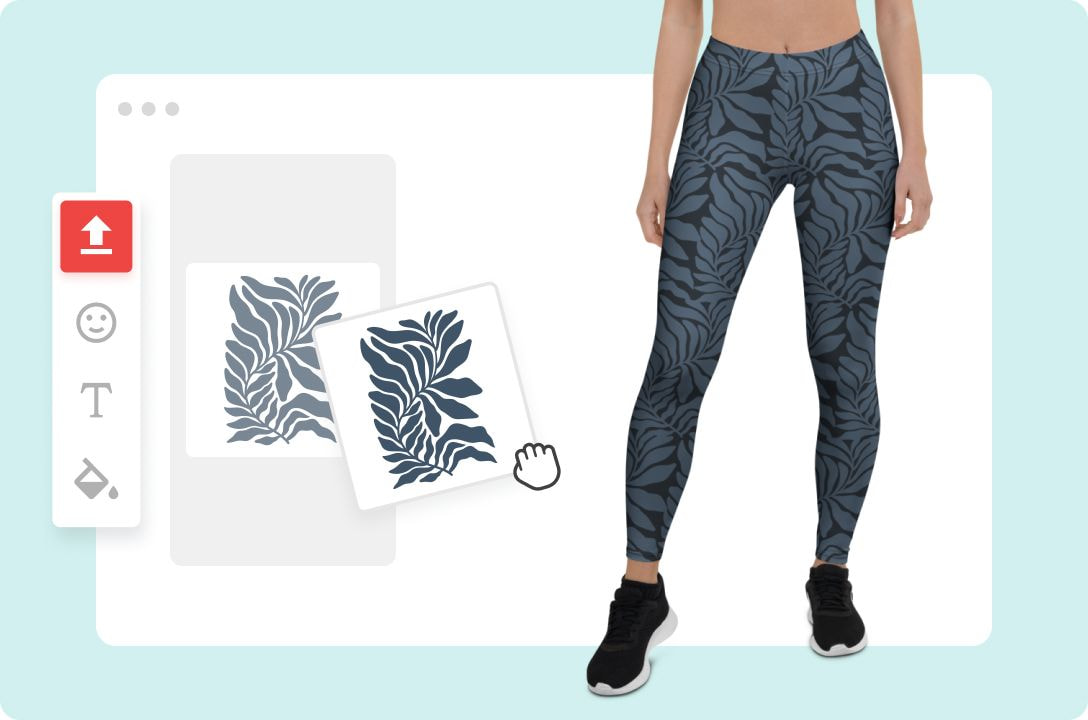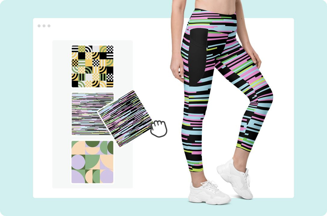 Wenn du Leggings bedrucken möchtest, brauchst du keine eigene Ausrüstung. Mit dem kostenlosen Design-Tool von Printful erstellst du individuelle Designs, die direkt auf das Produkt gedruckt werden. Nach der Gestaltung kannst du die Leggings per Print-on-Demand verkaufen – ganz ohne Lagerhaltung.