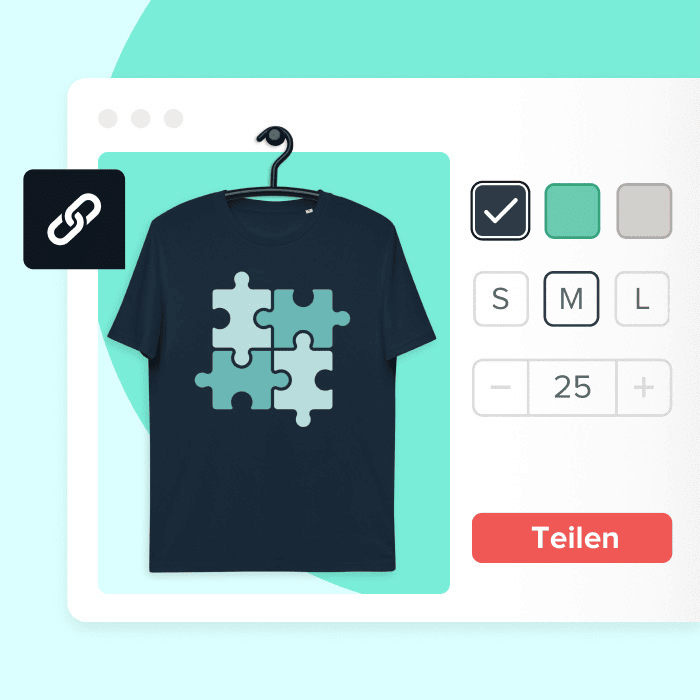 Der Shirt-Preis hängt vom gewählten Produktmodell, der Abwicklungstechnik (DTG-Druck oder Stickerei) und, ob du individuelle Etiketten verwendest, ab.