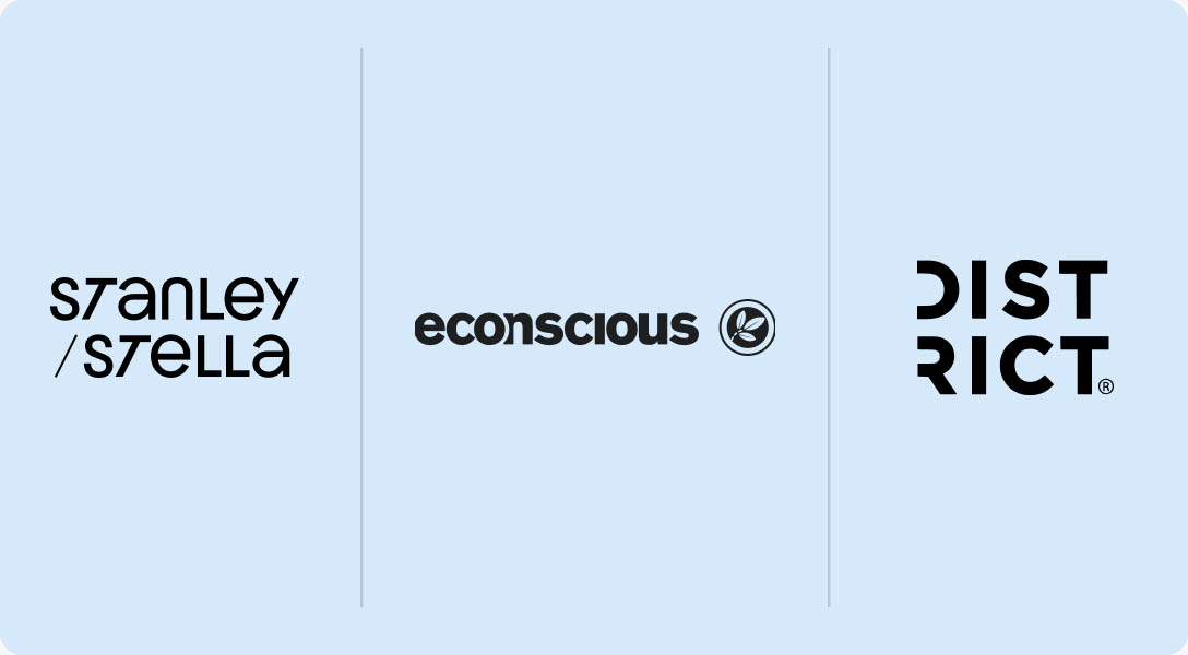 We work with leading sustainable clothing brands like Stanley/Stella, Econscious, and District. Their shirts are made with at least 70% organic or recycled materials, or both.