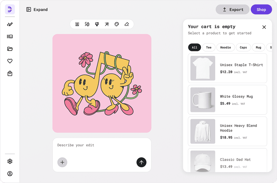 • Full Al-powered design suite for product creation