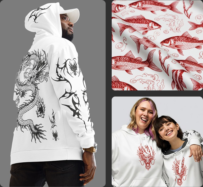 Diseña tu próxima colección de ropa de algodón con impresión en toda la prenda. Añade los estilos más vendidos a tu tienda y ofrece comodidad sin renunciar a la calidad.