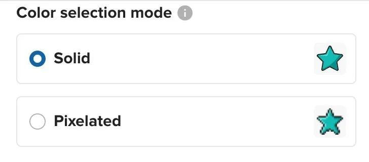 Une fois que vous avez ajouté votre motif et défini les couleurs, l'étape suivante consiste à choisir votre mode de sélection des couleurs. Deux modes sont disponibles : Uni et Pixellisé.
