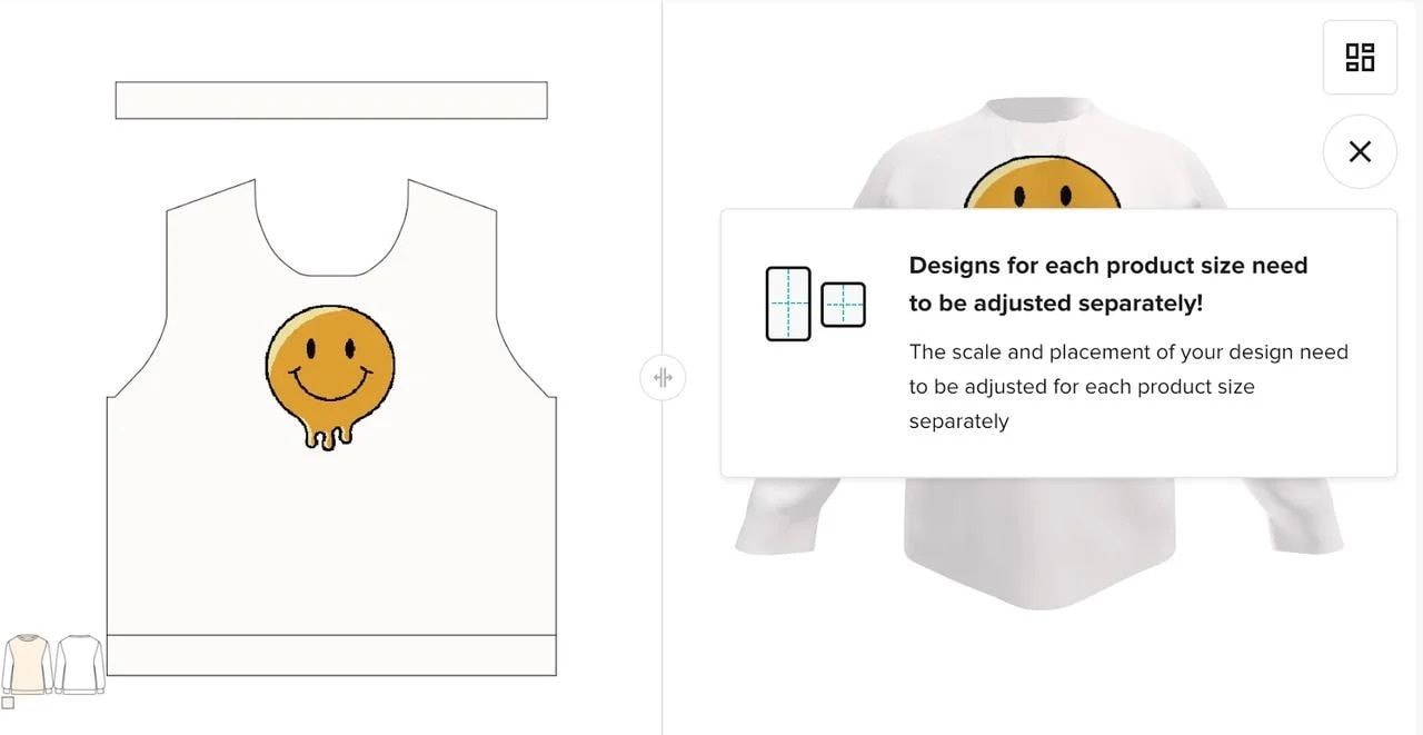 Ne redimensionnez jamais votre illustration après l’avoir indexée, sinon vous perdrez l'indexation des couleurs. Pour éviter les problèmes d’espaces vides, commencez toujours votre design à la taille la plus grande : il est plus facile de réduire que d’agrandir. N'oubliez pas que le redimensionnement fonctionne mieux pour des tailles similaires ; de grands écarts entre des modèles très grands et très petits peuvent déformer votre design.