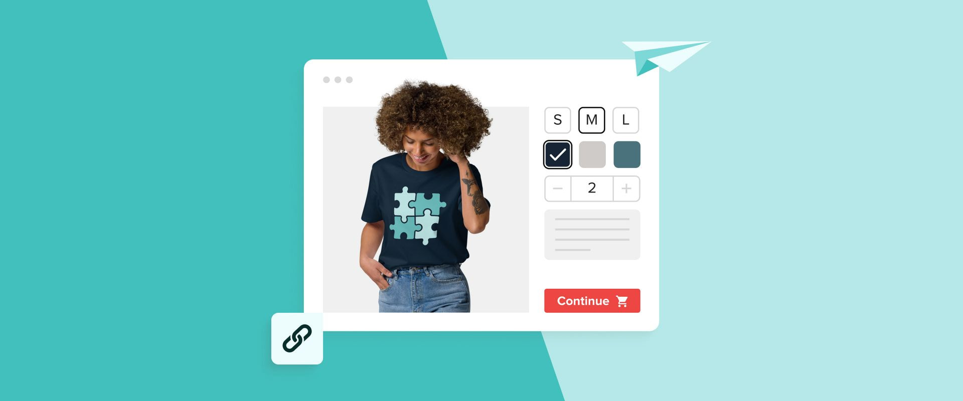 Share your link with whomever you please. They’ll be able to pick the size, color, and quantity of the product, leaving your design untouched.